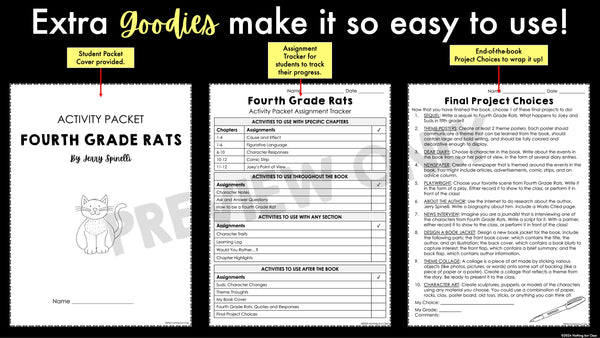 Discover the humor of Fourth Grade Rats with this 36-page activity pack, designed to inspire deeper understanding and engagement with Jerry Spinelli's story! Includes both printable and digital versions, along with answer keys.