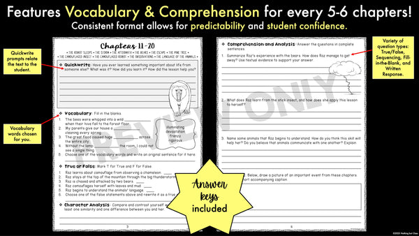 Dive into the imaginative world of The Wild Robot, by Peter Brown, with this 76-page comprehension and vocabulary resource! Organized by every 6-10 chapters, this unit includes both printable and digital versions, perfect for any classroom setup.